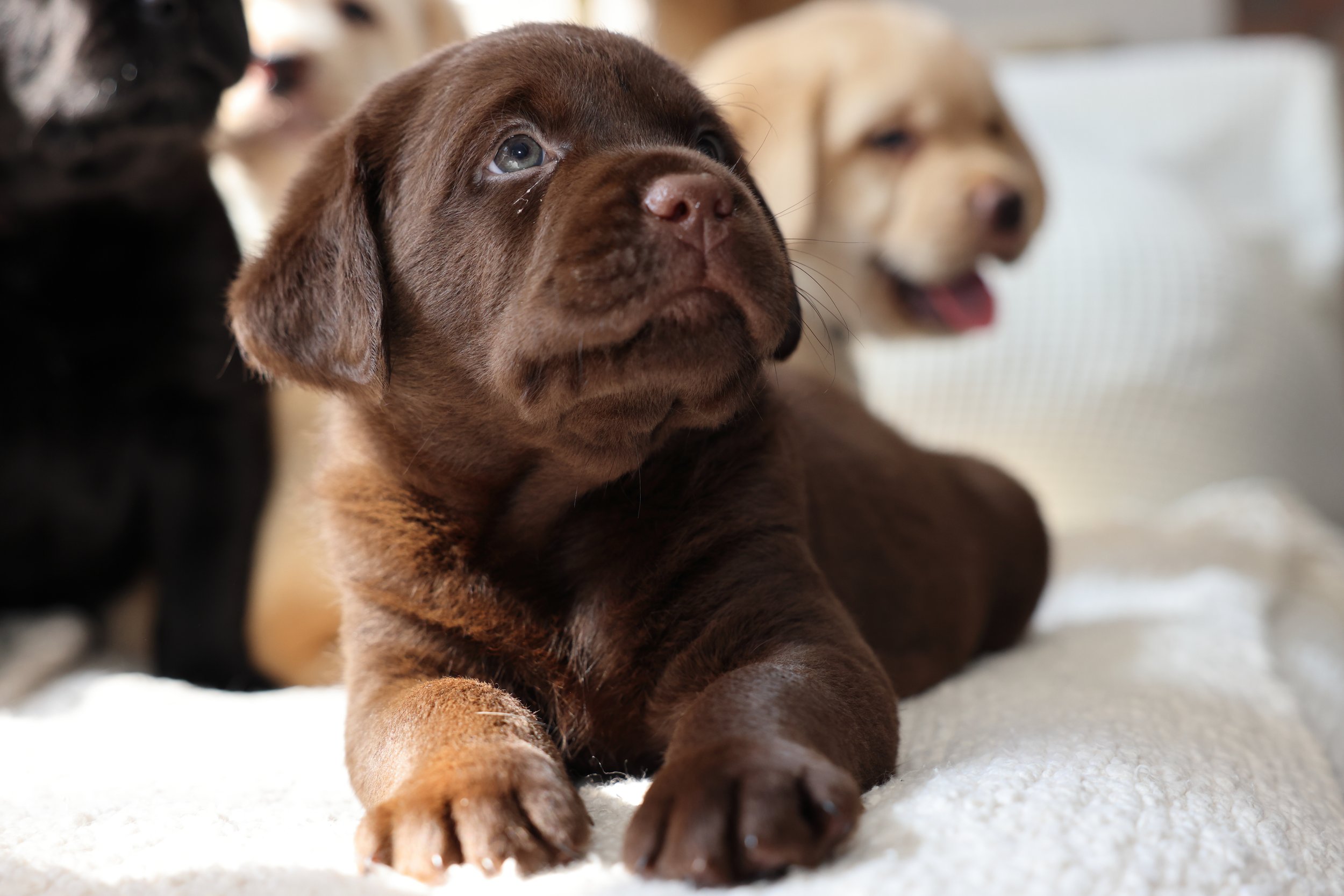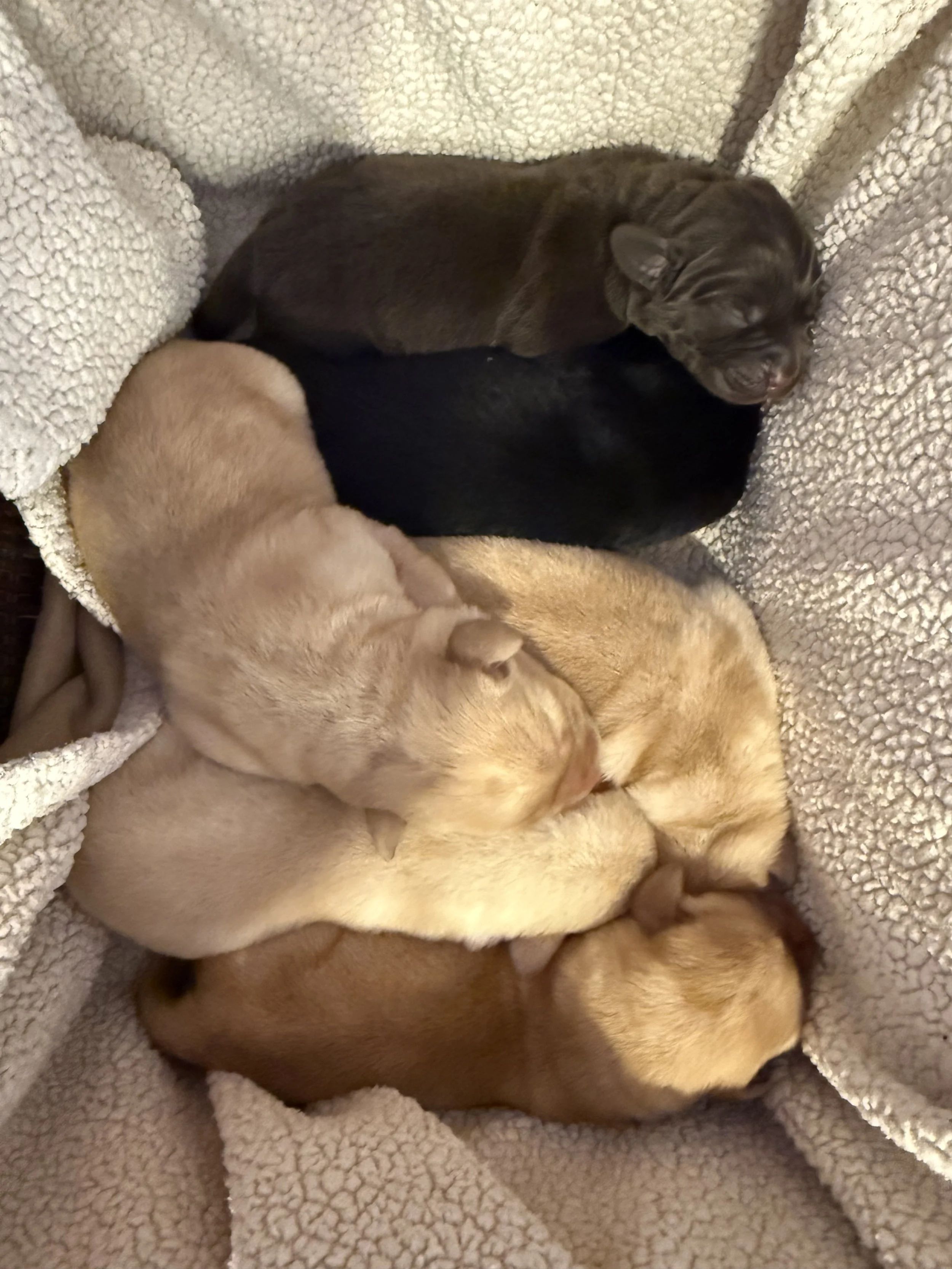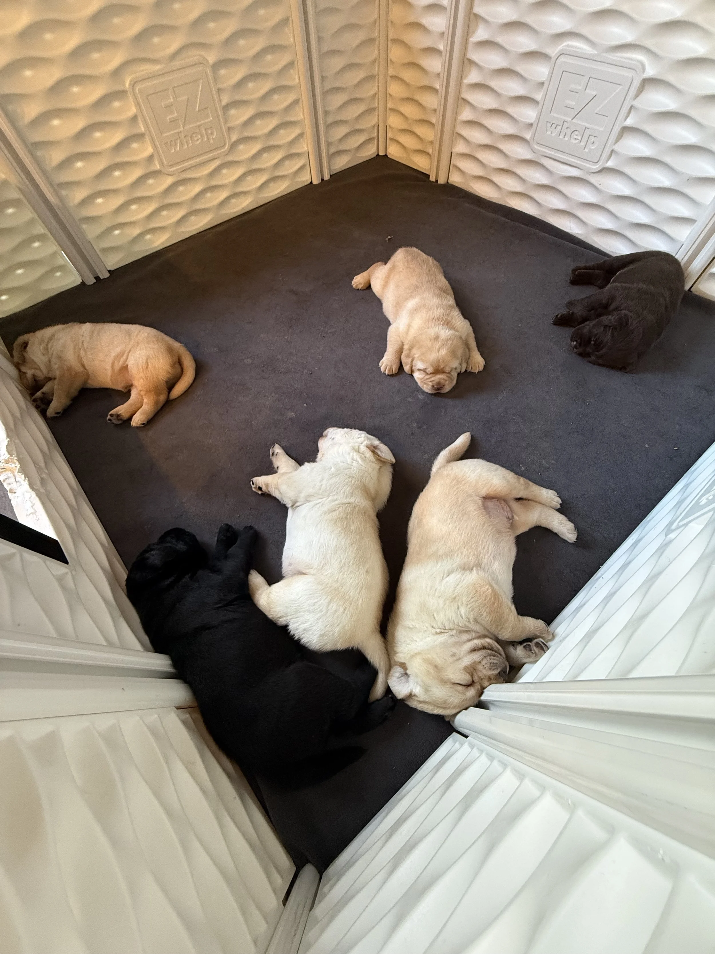 Kylie & Blake were paired up mid December and 6 puppies were born February 17, 2026. We had 5 males (3 yellows, 1 chocolate and 1 black) and 1 yellow female in this litter.